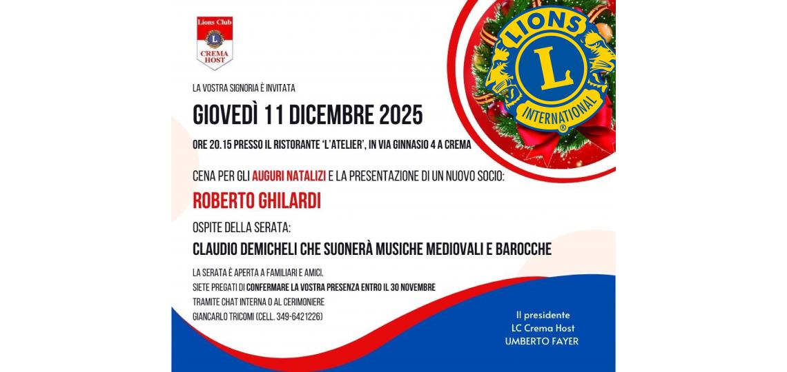 Data Inizio Evento: Giovedì, 11 Dicembre, 2025 - 20:15Data Fine Evento: Giovedì, 11 Dicembre, 2025 - 23:00Luogo evento: CREMAOrganizzatore evento: LC CREMA HOST