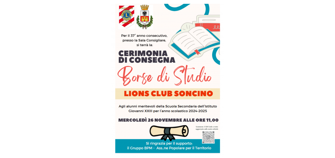 Data Inizio Evento: Mercoledì, 26 Novembre, 2025 - 11:00Data Fine Evento: Mercoledì, 26 Novembre, 2025 - 12:30Luogo evento: SONCINOOrganizzatore evento: LC SONCINO