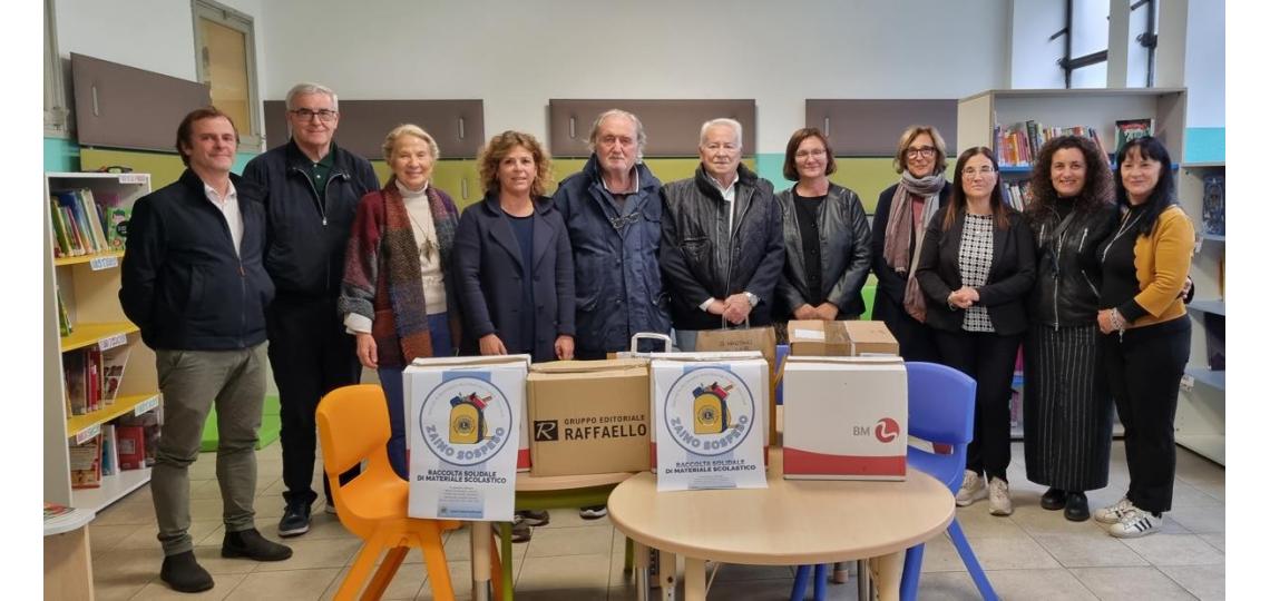 Quaderni, album da disegno, block notes, pennarelli, matite colorate, biro, gomme, forbici, stick di colla e tanto altro sono stati consegnati, il 22 ottobre u.s, all’Istituto Comprensivo Lodi 2, dal Presidente Gianfranco Dragoni accompagnato da alcuni soci, alla presenza della Dirigente Scolastica Dott.ssa Carmela Riganò, che li destinerà alle scuole di alcuni paesi del territorio lodigiano quali San Martino, Ossago e Cavenago. In quest’occasione la Referente Distrettuale per il Service “Zaino Sospeso”, Manuela Granati, ha brevemente sottolineato l’importanza del service evidenziando l’impegno dei Lions lodigiani nel raggiungere gli obiettivi di contrasto alla fragilità.