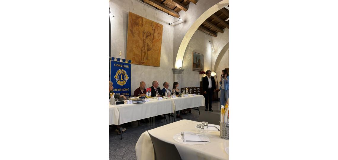 A fare gli onori di casa il Presidente del Club, Riccardo Murabito, che ha guidato con passione e determinazione un’annata ricca di attività, incontri e service a favore della comunità. Al suo fianco, presenze di rilievo del panorama distrettuale e locale: il 1° Vice Governatore del Distretto 108 Ib3 Mirella Marussich, il 2° Vice Governatore Paolo Doldi, il Presidente di Zona A Vittorio Malfasi, il Presidente del Lions Club Crema Gerundo Andrea Goldaniga, il Presidente in coming del Lions Club Crema Serenissima Arrigo Fusar Bassini, il rappresentante del Lions Club Pandino Gera d’Adda Viscontea Gianni Marchese, l’Officer distrettuale e Lions Guida Elda Zucchi e, per i Leo, la Presidente in coming del Leo Club Tarantasio Terre Cremasche, Vittoria Guariniello.