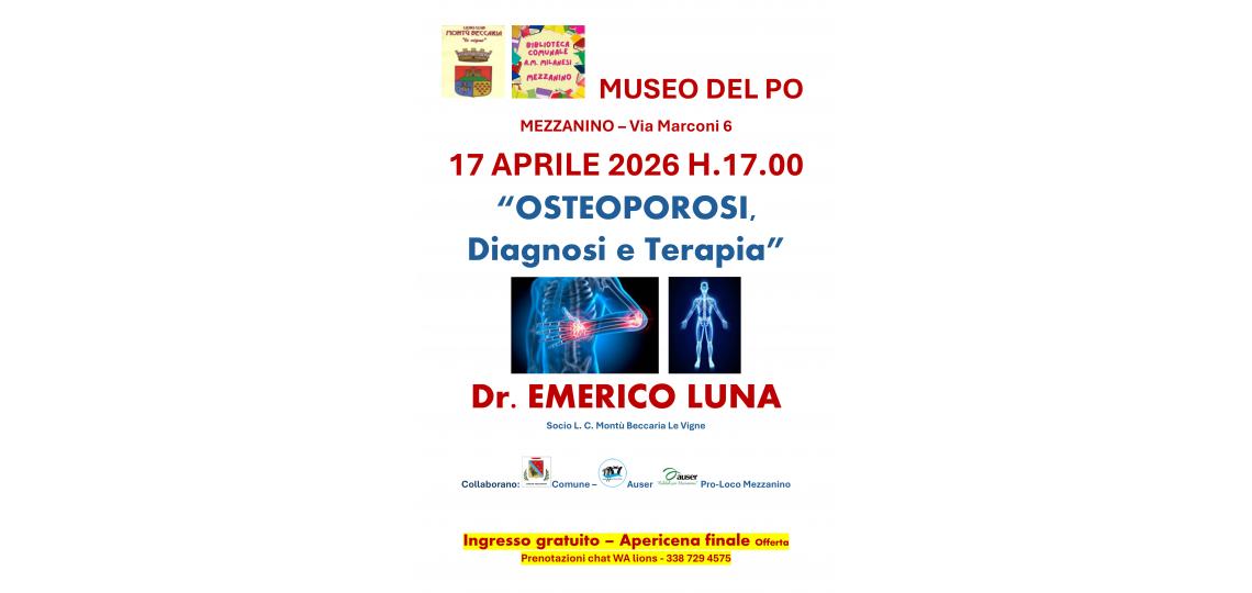 Data Inizio Evento: Venerdì, 17 Aprile, 2026 - 17:00Data Fine Evento: Venerdì, 17 Aprile, 2026 - 19:00Luogo evento: MEZZANINO (PV)Organizzatore evento: LC MONTU' BECCARIA LE VIGNE