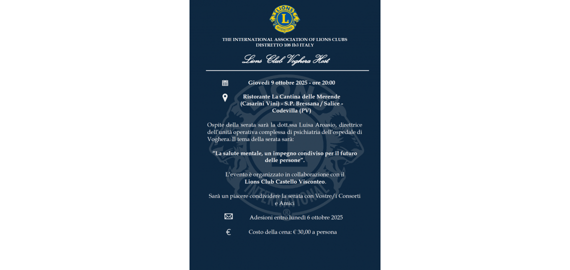 Data Inizio Evento: Giovedì, 9 Ottobre, 2025 - 20:00Data Fine Evento: Giovedì, 9 Ottobre, 2025 - 23:00Luogo evento: CODEVILLA (PV)Organizzatore evento: LLCC VOGHERA HOST - VOGHERA CASTELLO VISCONTEO