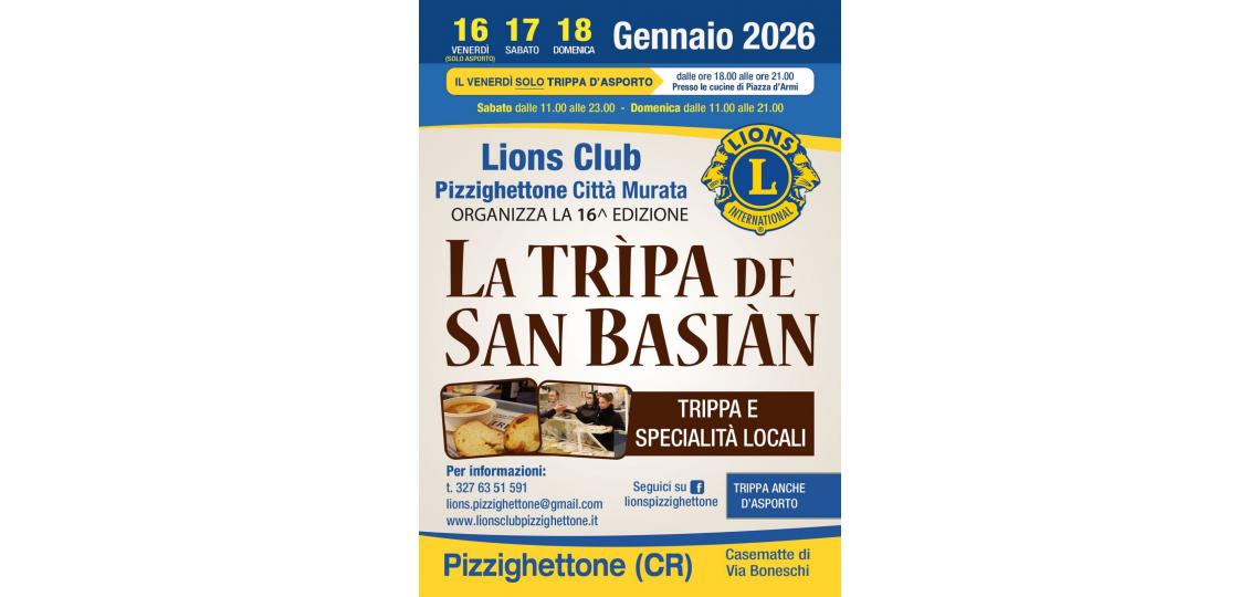 Data Inizio Evento: Venerdì, 16 Gennaio, 2026 - 18:00Data Fine Evento: Domenica, 18 Gennaio, 2026 - 21:00Luogo evento: PIZZIGHETTONEOrganizzatore evento: LC PIZZIGHETTONE CITTA MURATA