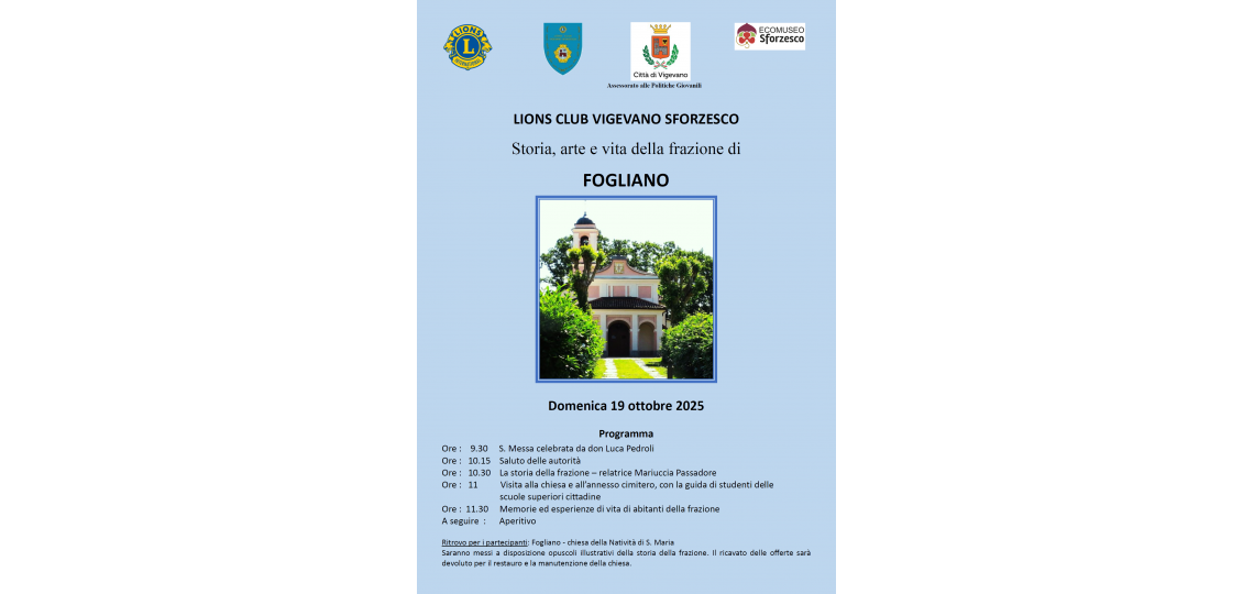 Data Inizio Evento: Domenica, 19 Ottobre, 2025 - 09:30Data Fine Evento: Domenica, 19 Ottobre, 2025 - 12:30Luogo evento: FOGLIANOOrganizzatore evento: LC VIGEVANO SFORZESCO